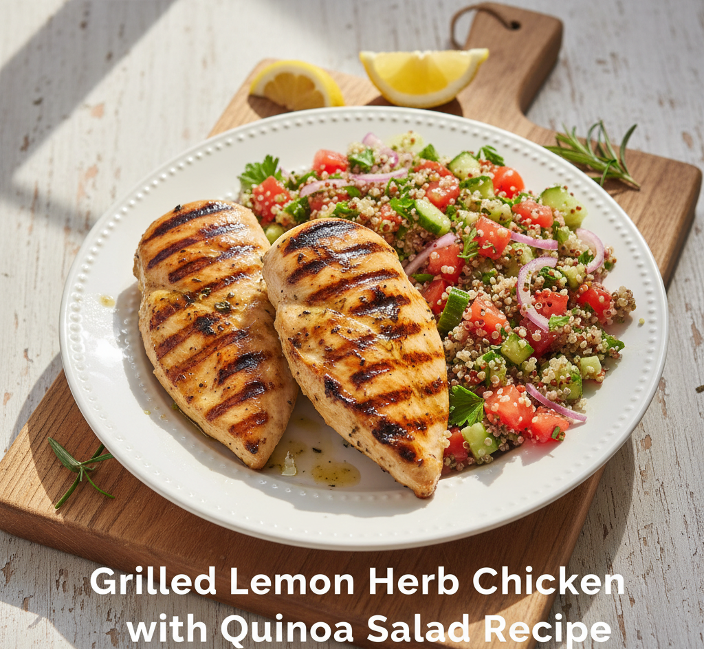 The grilled lemon herb chicken with quinoa salad recipe brings together flavor and simplicity. It proves that healthy food can taste amazing without taking much time. Fresh lemon juice and herbs make the chicken tender and full of flavor, while quinoa adds a soft, nutty base that keeps you full longer.
