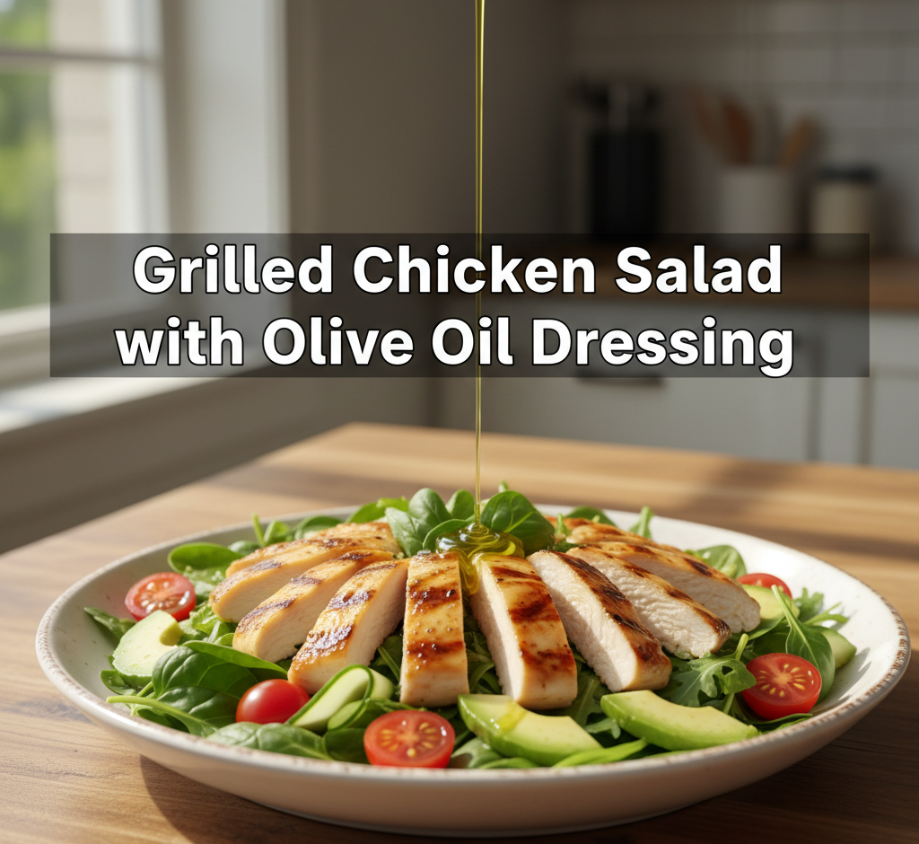 Grilled Chicken Salad with Olive Oil Dressing is a light, healthy, and easy meal that’s perfect for lunch or dinner. It combines juicy grilled chicken, crisp vegetables, and a simple olive oil dressing that ties all the flavors together. It’s full of protein, vitamins, and freshness.