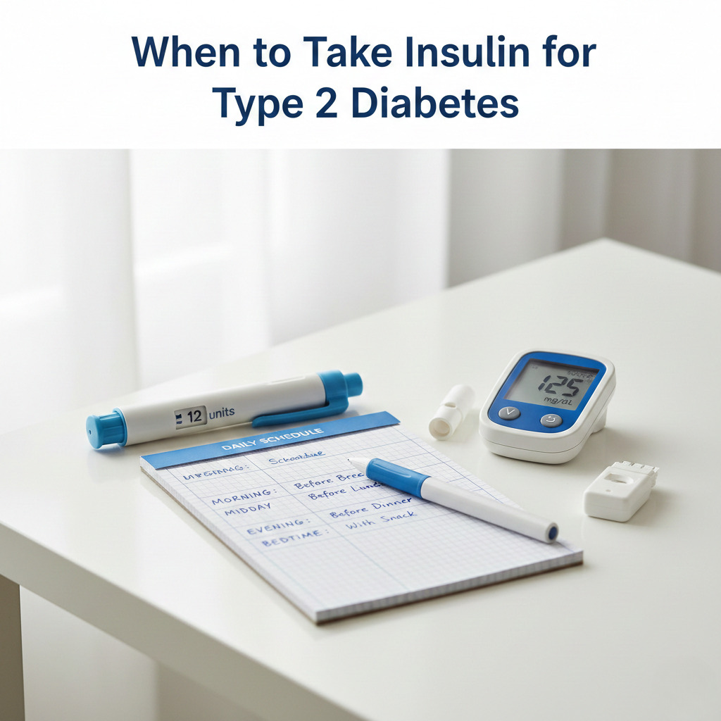 The exact answer to the question when to take insulin for type 2 diabetes is that insulin should be taken at the times your doctor recommends, which usually includes before meals for rapid acting insulin, once or twice daily for long acting insulin, and anytime blood sugar remains high even after other treatments fail to control it. Timing depends on the insulin type, your blood sugar patterns, and your daily routine.